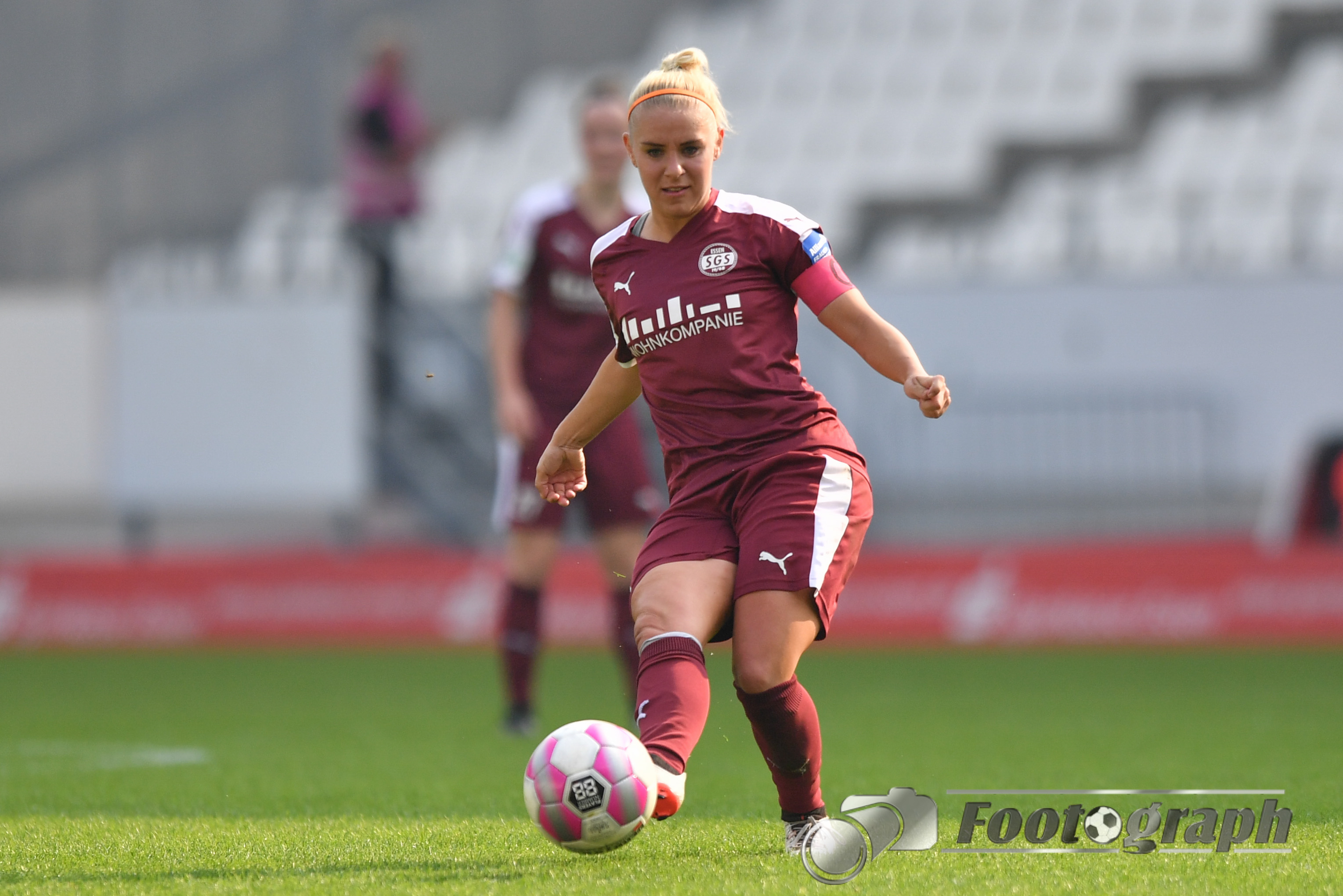 - Leonie Pankratz (TSG 1899 Hoffenheim) (21) klärt mit einer Grätsche gegen Sarah Freutel (SGS, 7)