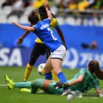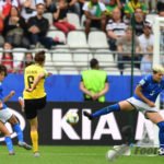- Cristina Girelli (Italien) (10) köpft an Sydney Schneider (Torhüterin, Jamaika) (1) zum 0:3 vorbei – Ihr Hattrick