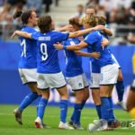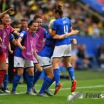 - Jubel nach dem 0:5 über Jamaika. Italienische Spielerinnen glücklich – Springen vor Glück und feiern mit den Fans