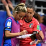 - Chiara Marchitelli (Torhüterin, Italien) (12) lässt ihre Teamkollegin im Panini Album unterschreiben