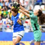 - Cristina Girelli (Italien) (10) heads the Ball for her hattrick past Sydney Schneider (Torhüterin, Jamaika) (1)