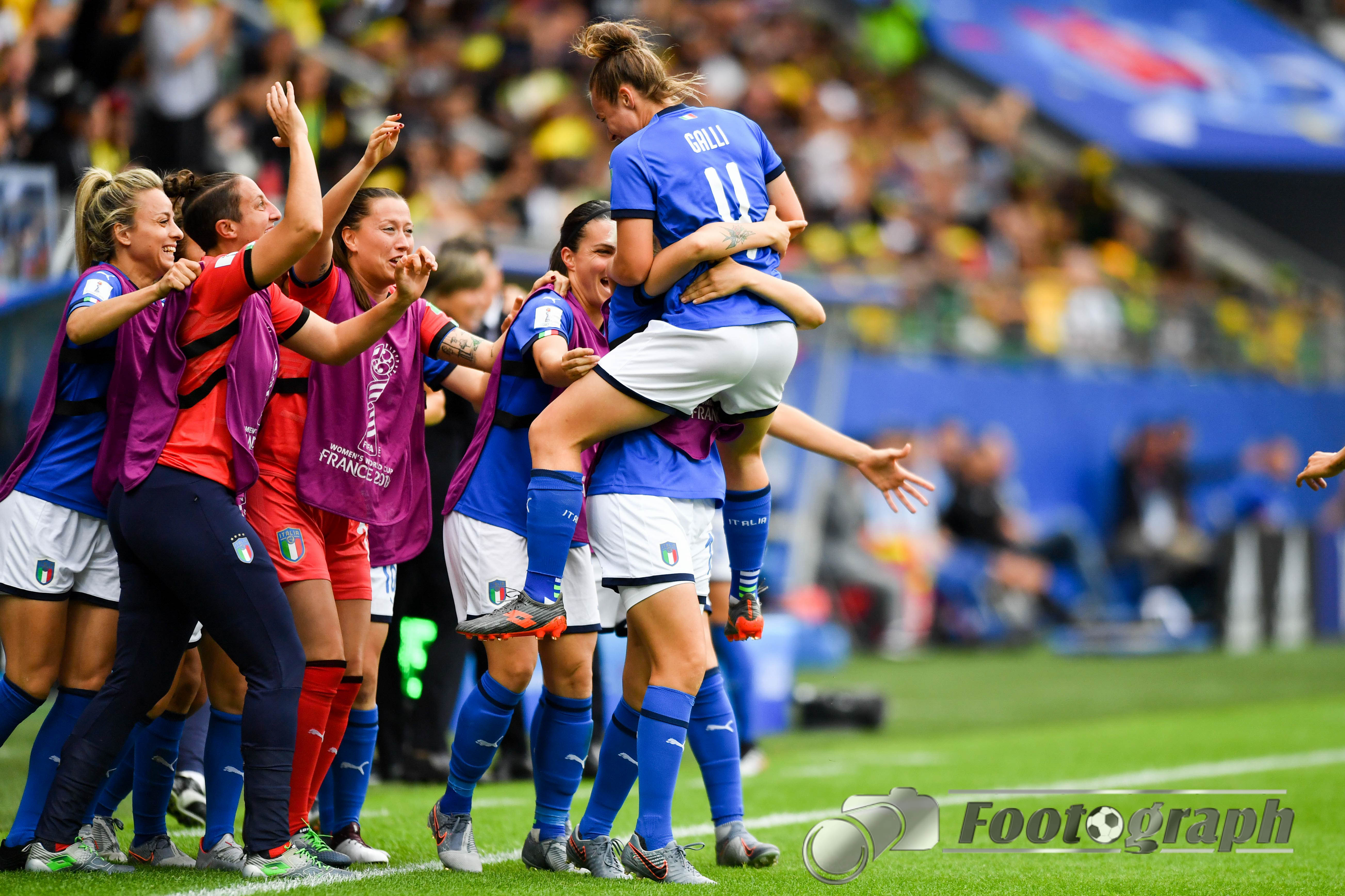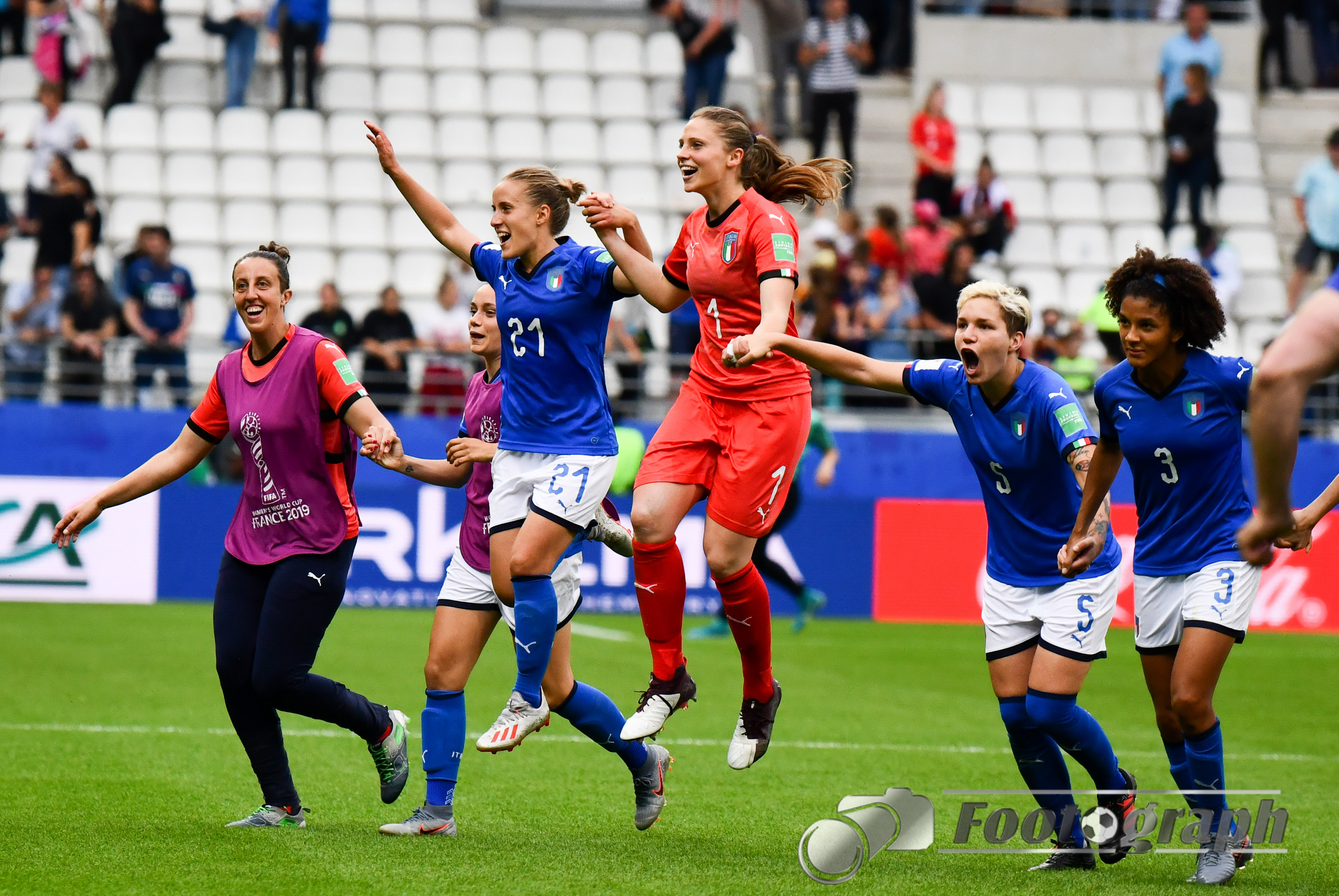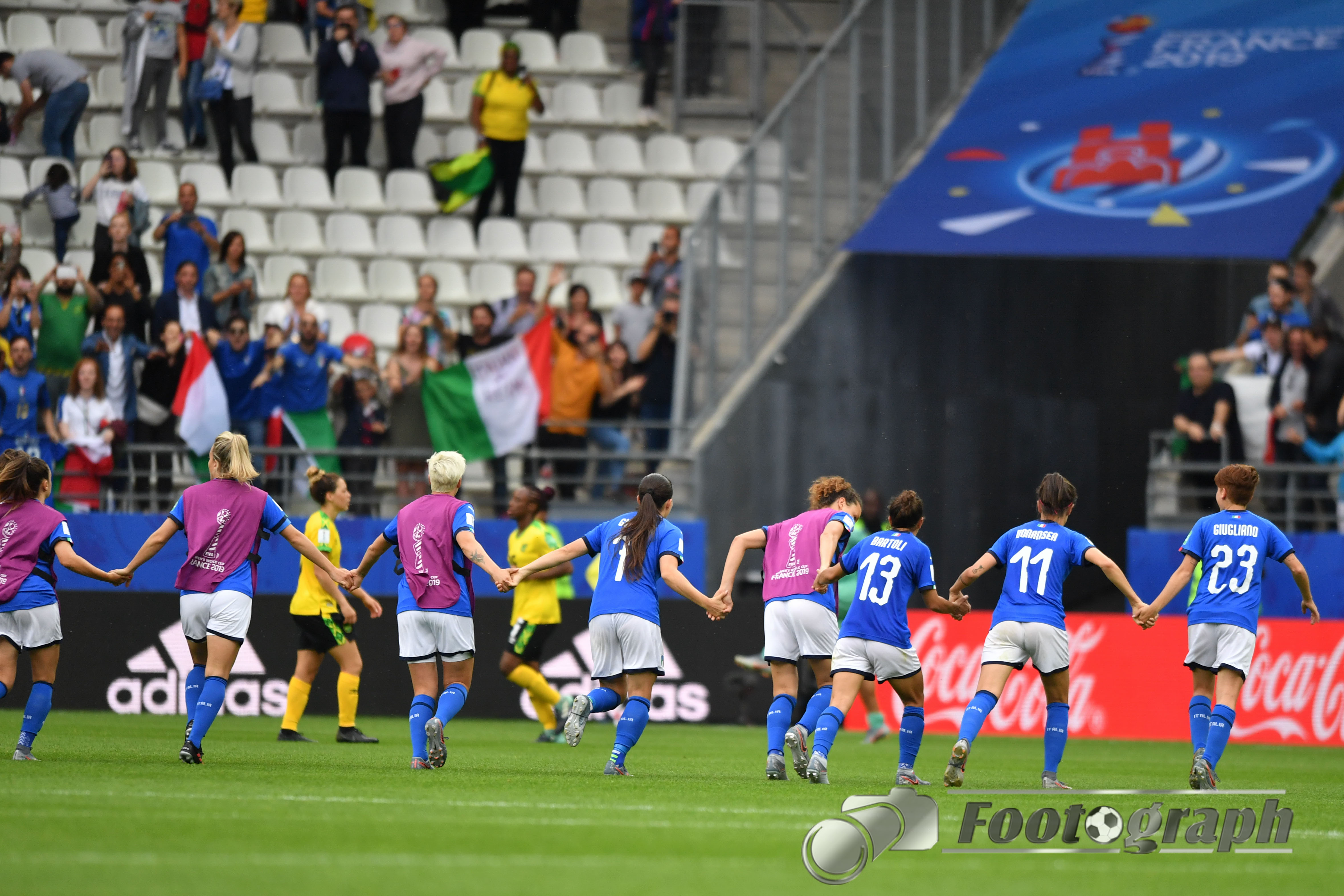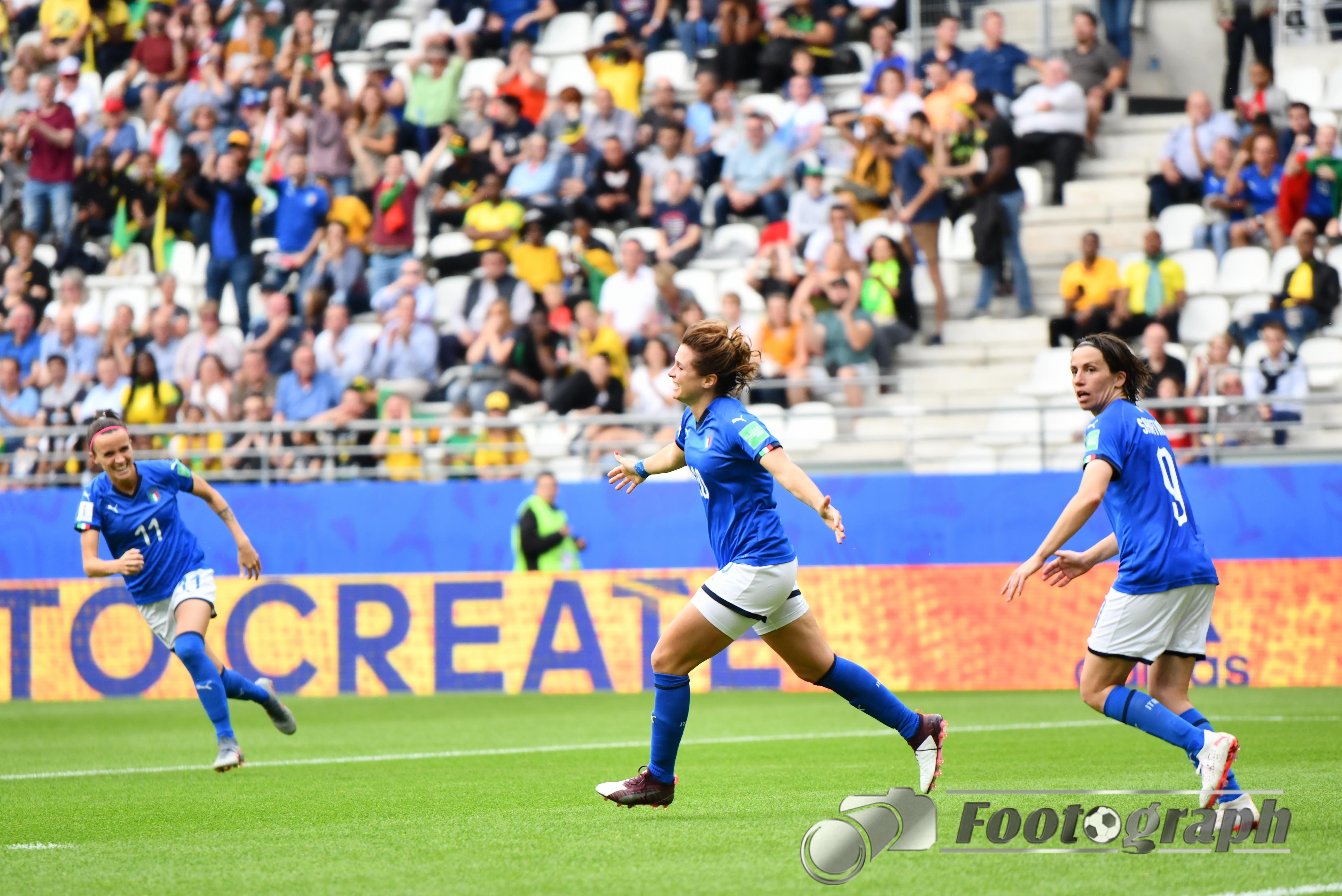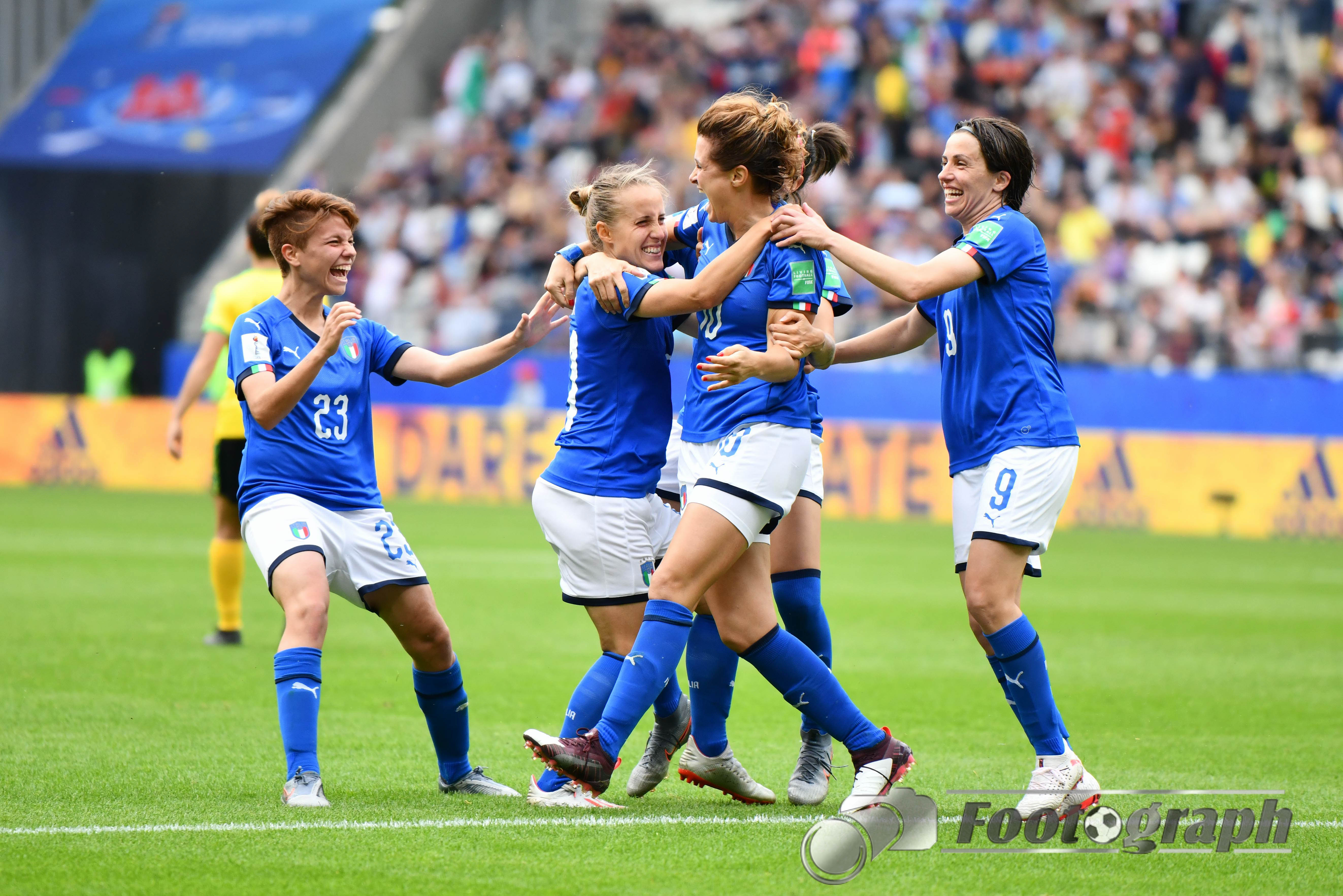 - Jubel nach dem 0:5 über Jamaika. Italienische Spielerinnen glücklich – Springen vor Glück und feiern mit den Fans