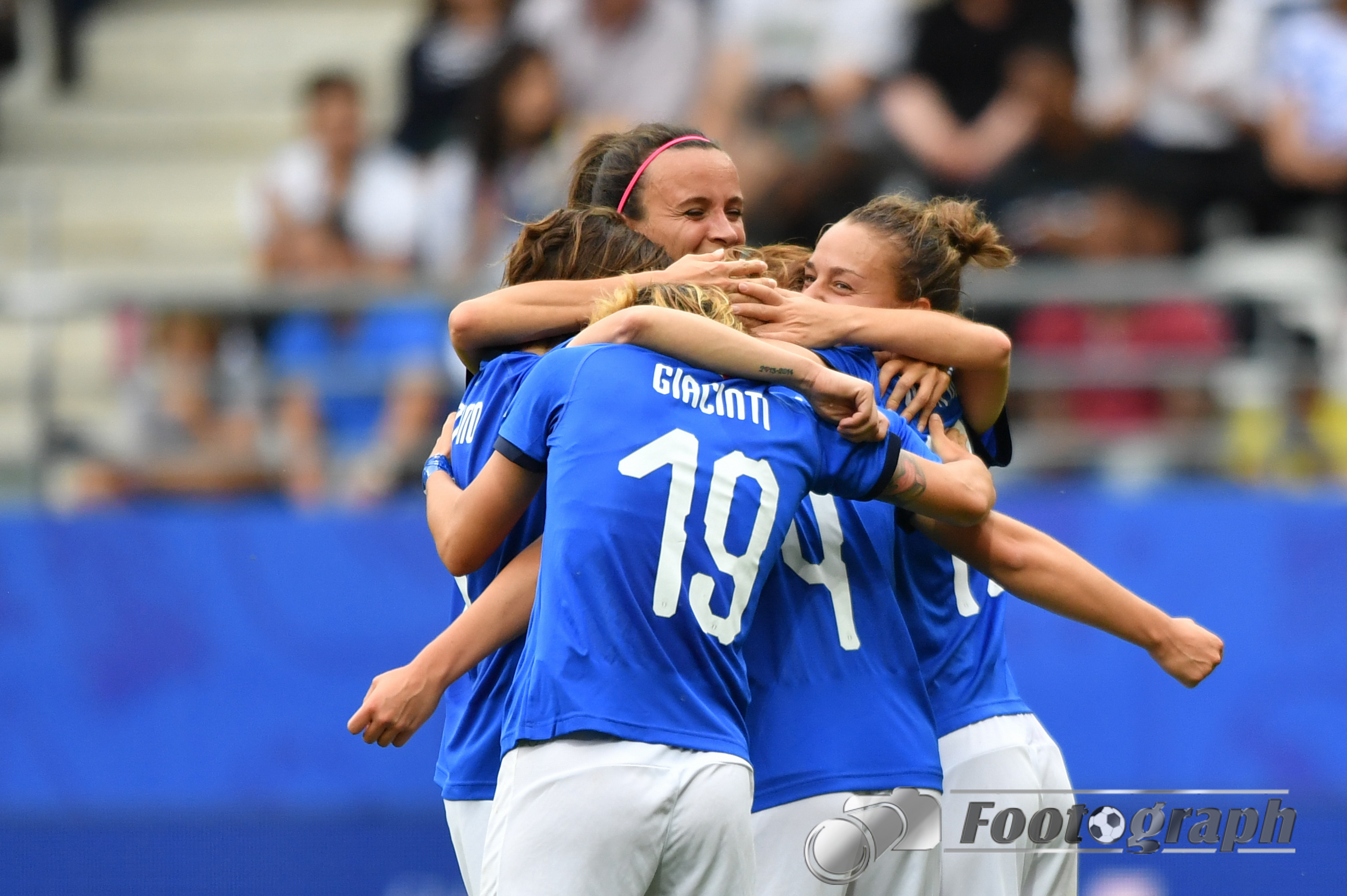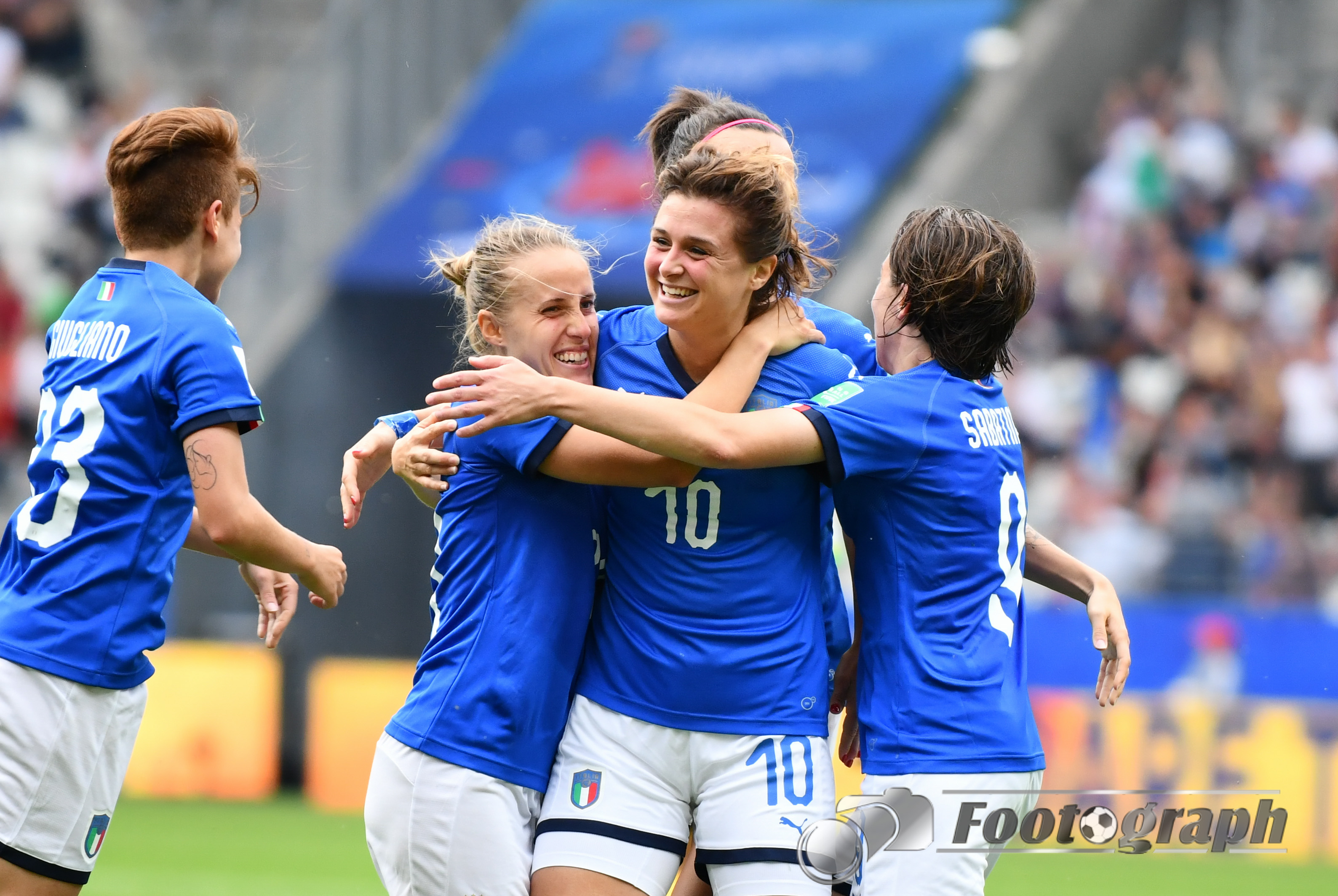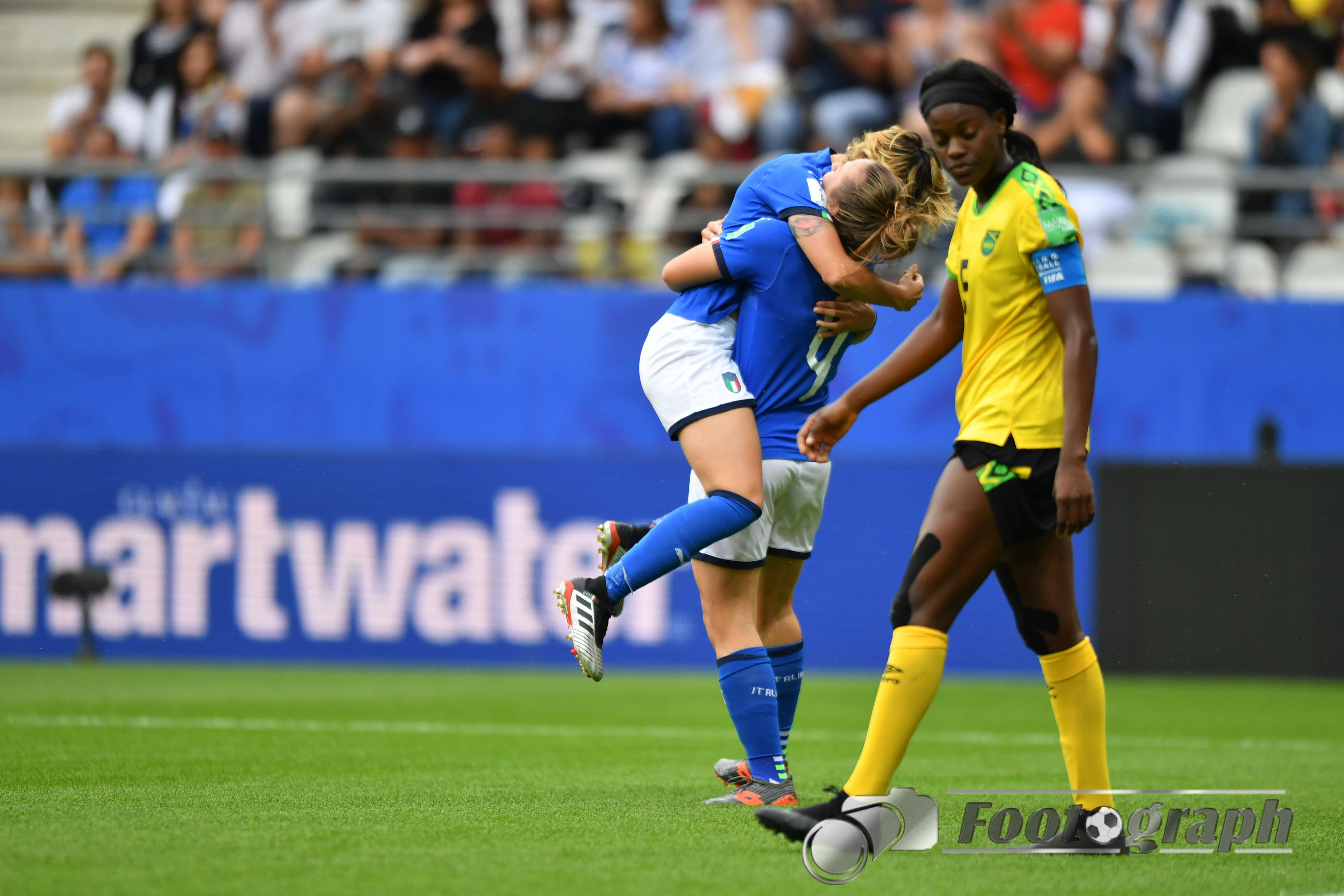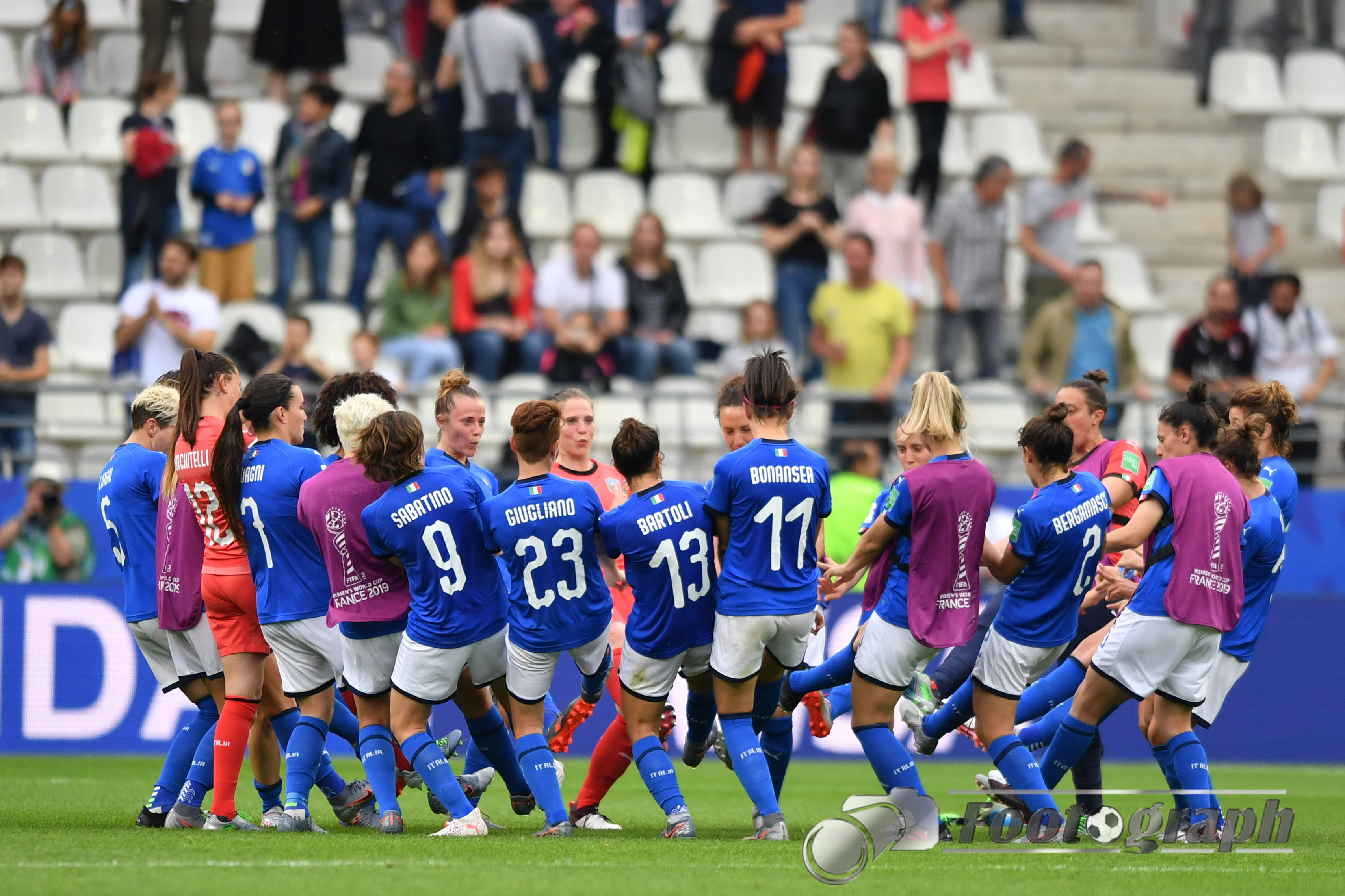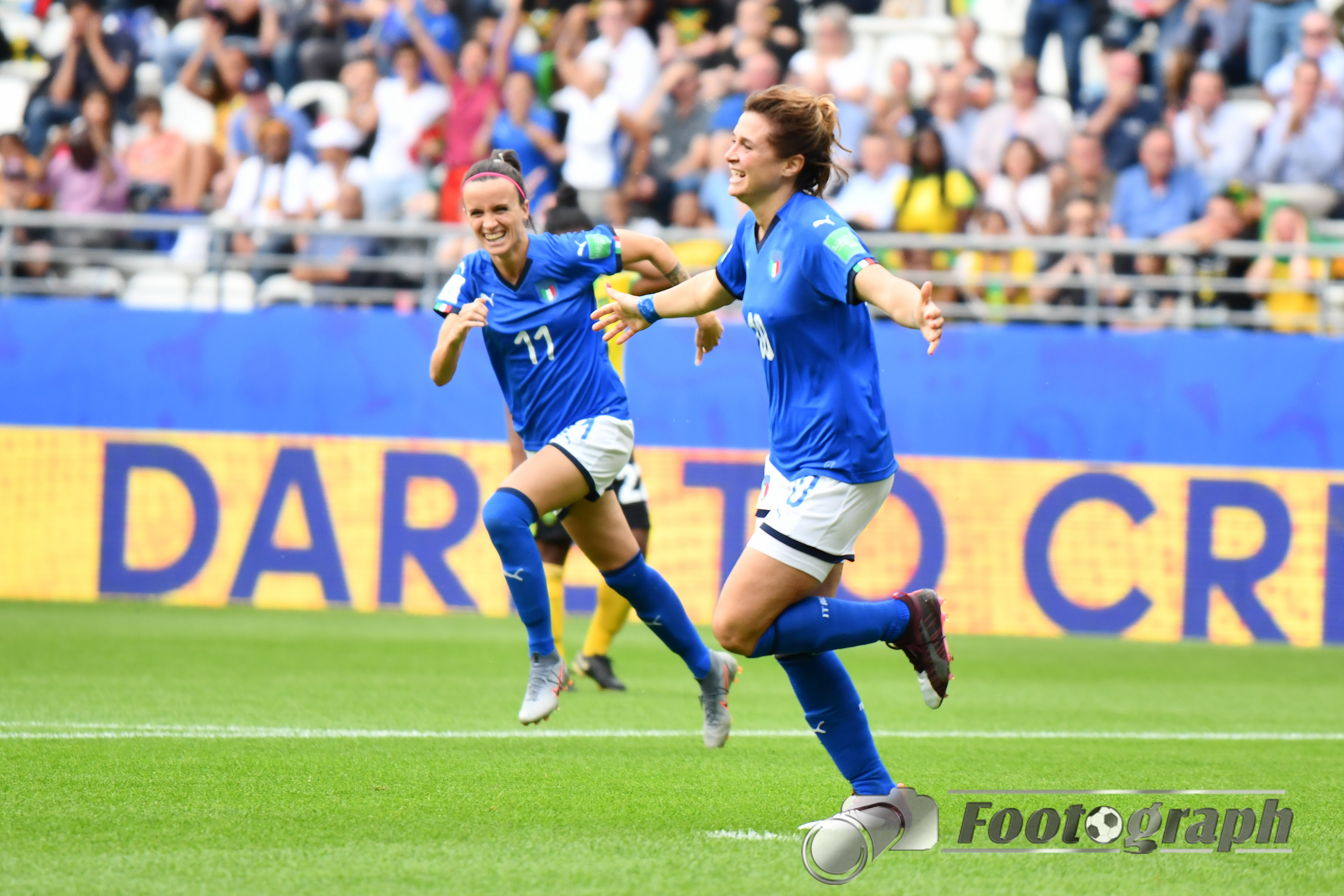 - Jubel nach dem 0:5 über Jamaika. Italienische Spielerinnen glücklich – Springen vor Glück und feiern mit den Fans