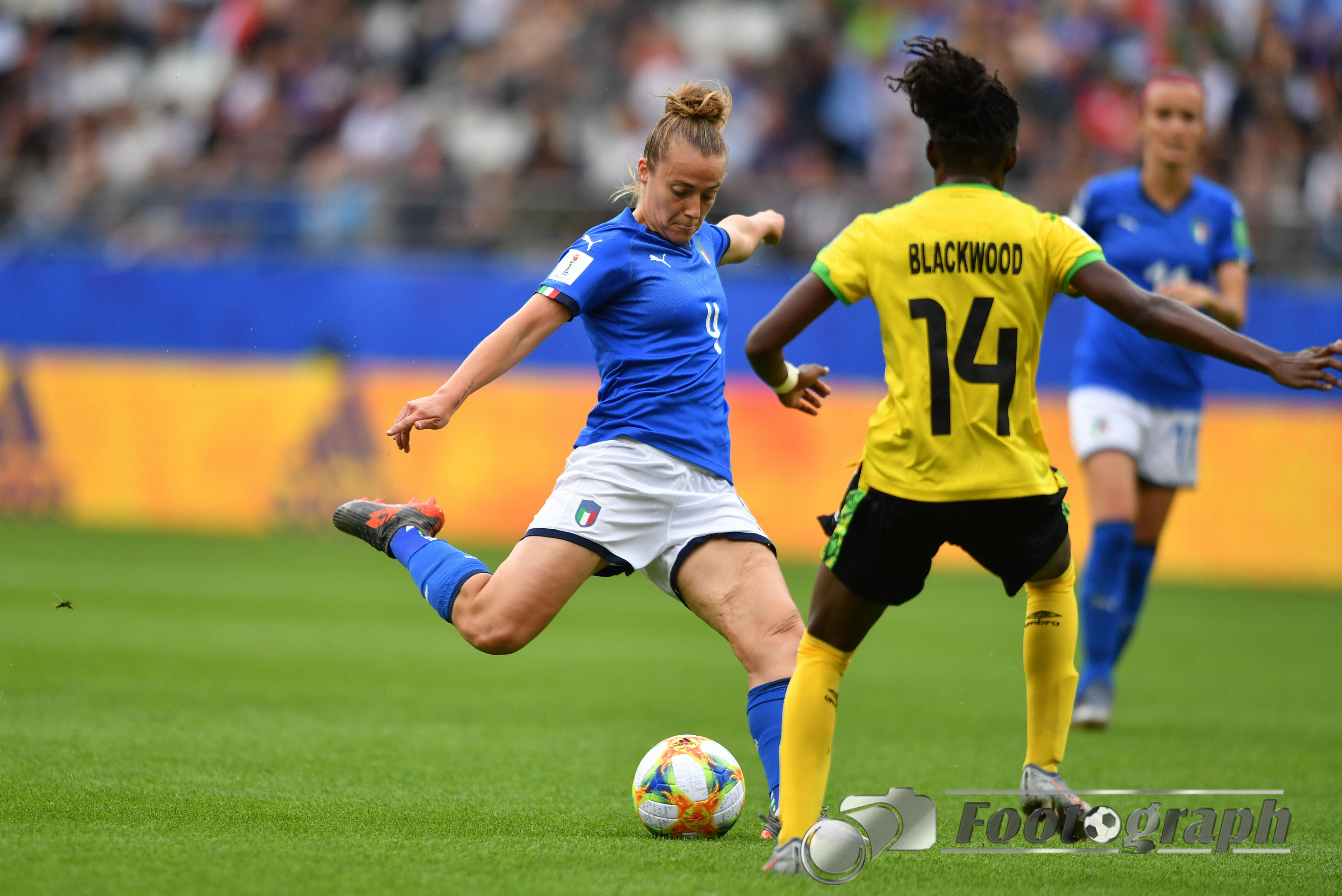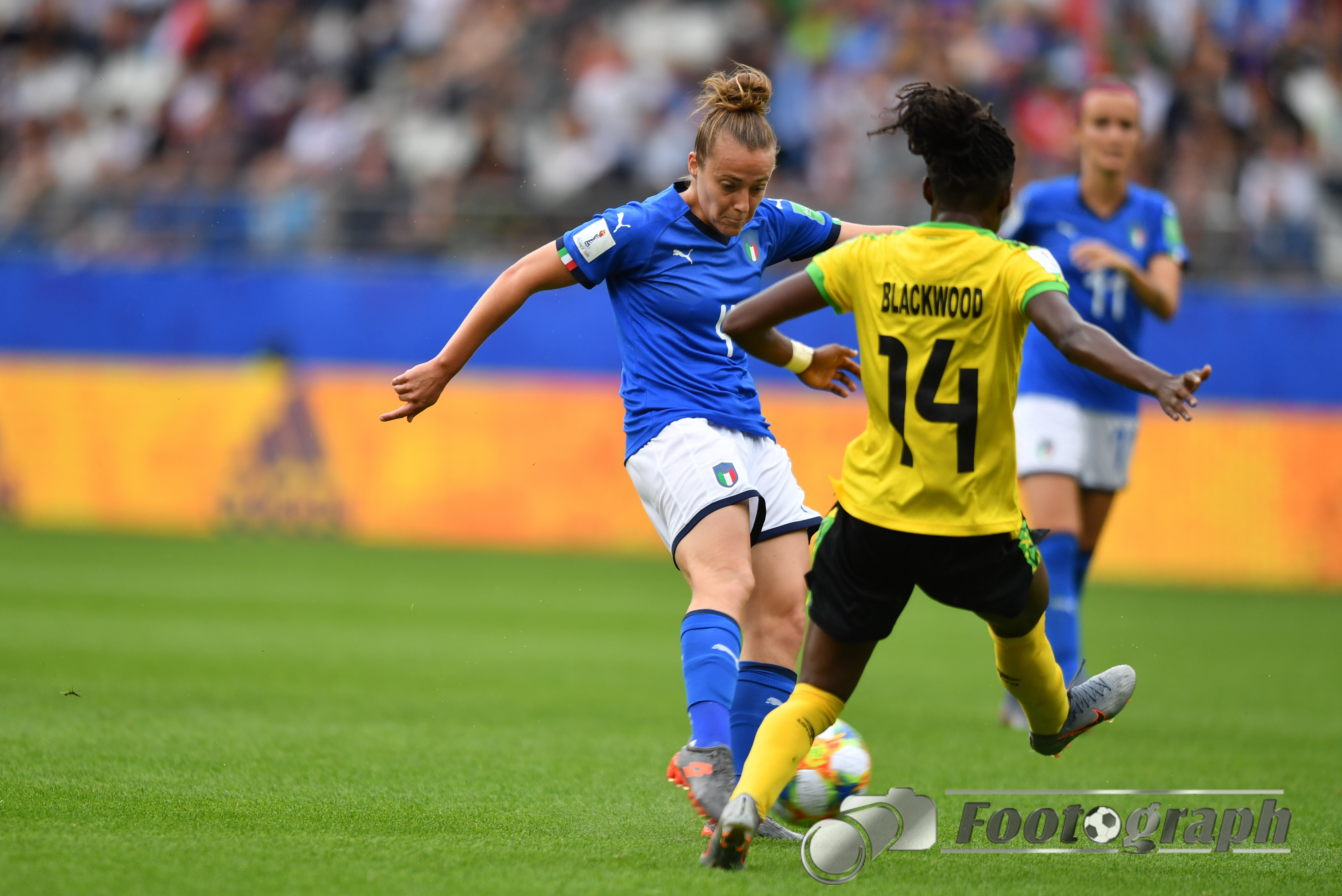 - Sashana Campbell (Jamaika) (12) verfolgt Barbara Bonansea (Italien) (11) – Allyson Swaby (Jamaika) (17) erwartet Sie