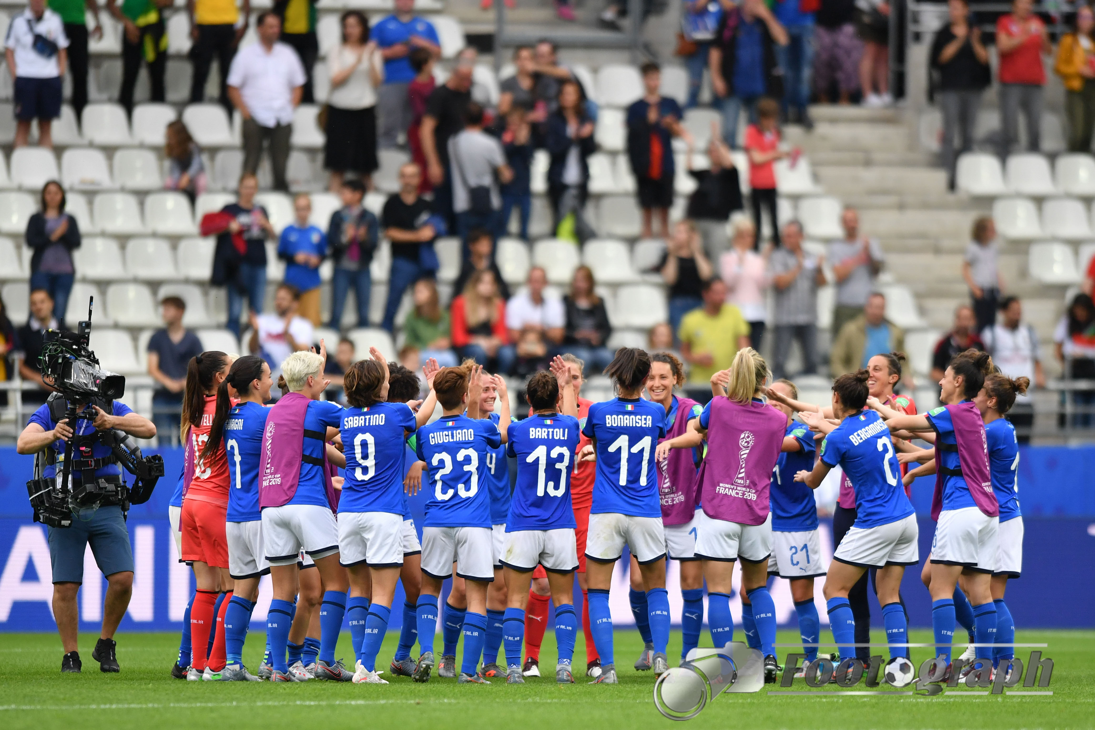 - Jubel nach dem 0:5 über Jamaika. Italienische Spielerinnen glücklich – pure Emotionen – feiern mit den Fans