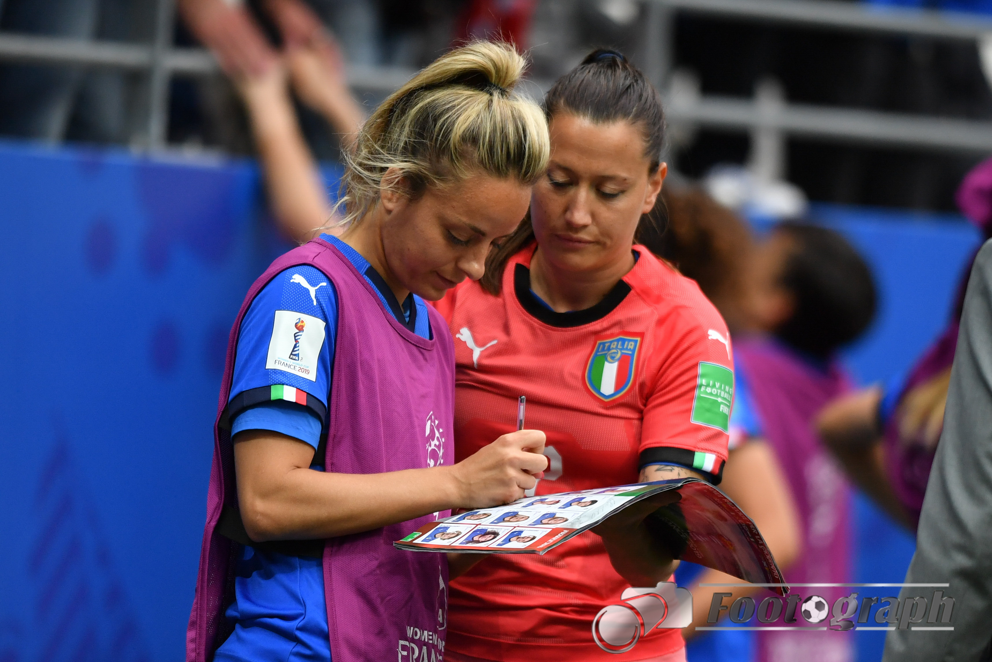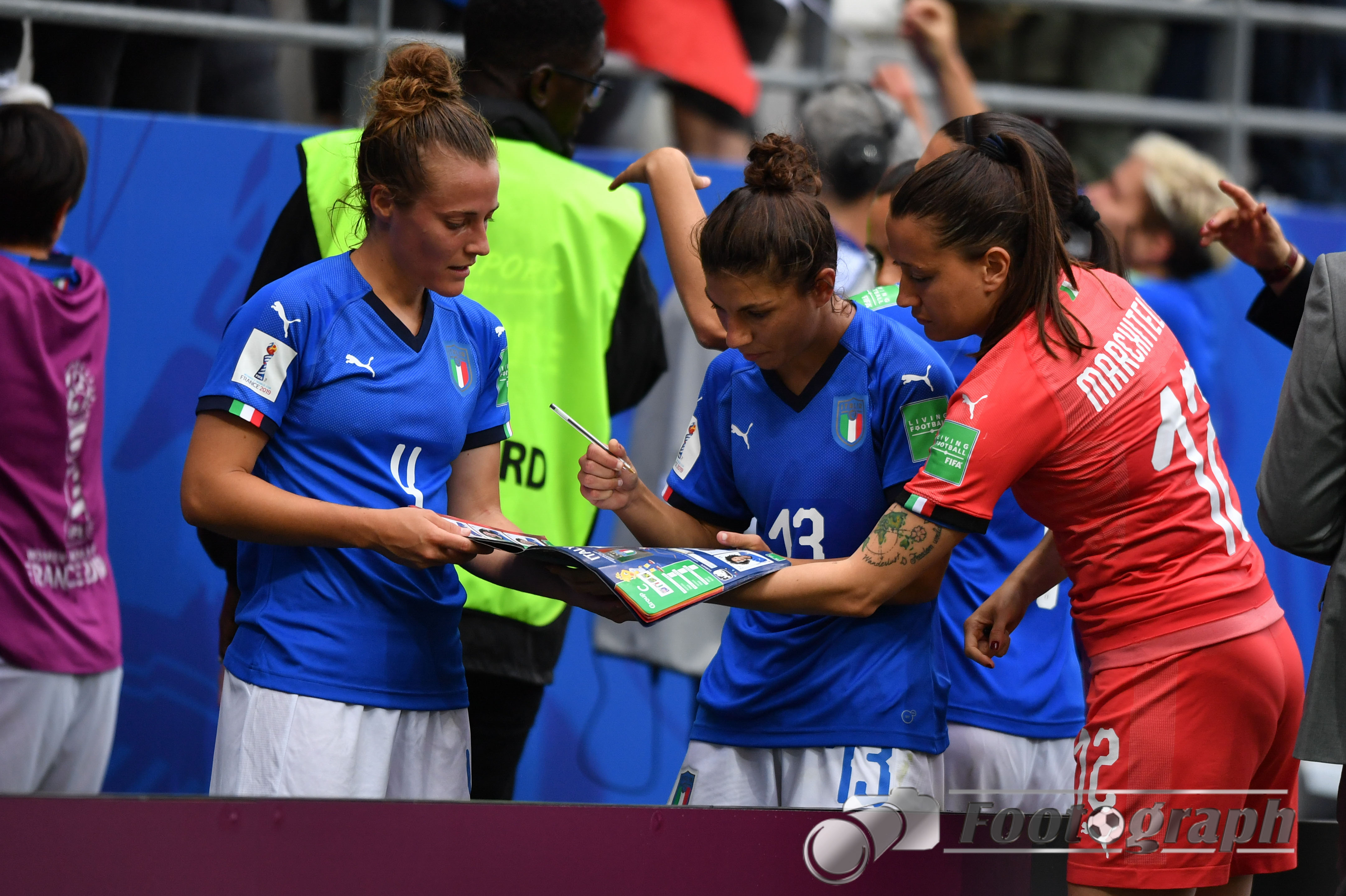 - Chiara Marchitelli (Torhüterin, Italien) (12) lässt ihre Teamkollegin im Panini Album unterschreiben
