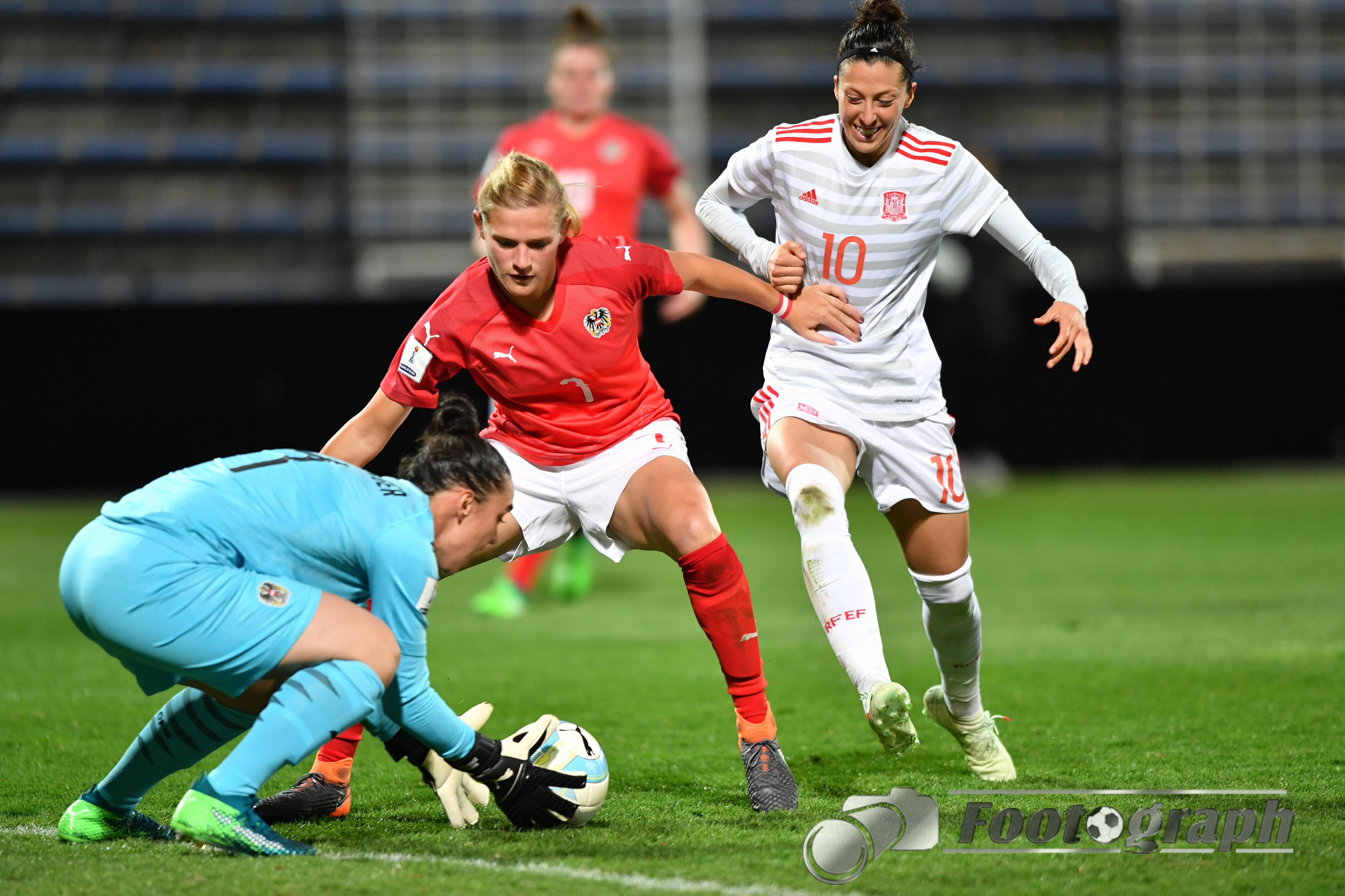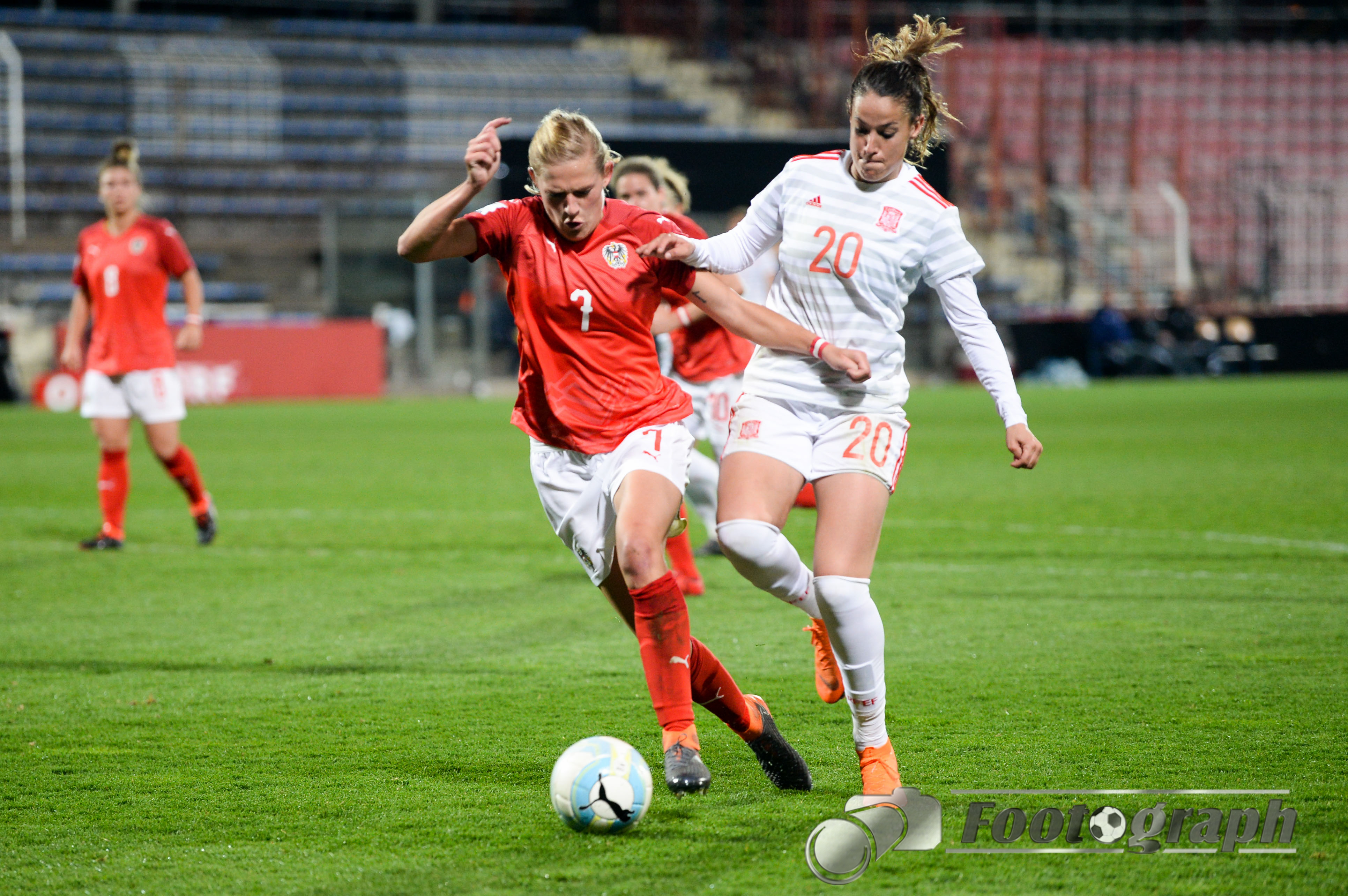 - Zweikampf Katharina Schiechtl (Österreich) (6) hält Jennifer Hermoso Fuentes (Spanien , Spain) (10)